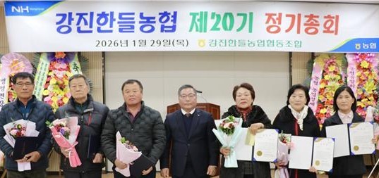 강진한들농협(조합장 조명언)은 지난달 29일 강진한들농협 본점 2층에서 제20기 정기총회를 개최하고, 지난 한 해 조합 운영 성과를 공유하는 한편 조합원 실익 중심의 경영을 바탕으로 한 새 출발을 다짐했다.이날 정기총회에는 내부 조직장을 비롯해 200여 명이 참석했으며, 강진원 군수, 서순선 군의장, 차영수·김주웅 도의원, 농협강진군지부장, 북삼면 면장 등..