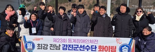 강진군 선수단이 전남 대표로 출전한 제23회 동계 장애인체육대회 크로스컨트리 종목에서 금메달2개, 은메달1개, 동메달1개를 획득하며 우수한 성과를 거뒀다. 특히 강진군 선수단이 획득한 메달로 전라남도 선수단의 종합 성적 향상에 크게 기여했다. 그 결과 전라남도는 지난 대회 종합순위 9위에서 이번 대회 6위로 3계단 상승하는 성과를 거뒀으며, 이는 강진군 선..