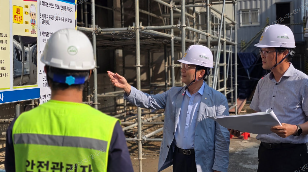 100년 미래를 준비하는 강진농협(조합장 진성국) 본점 종합청사 신축 사업이 순조롭게 진행되고 있다. 지난 3월 착공 이후 9월 초 현재 전체 공정률은 45%를 기록했으며 최근 3층 바닥 콘크리트 작업을 마무리 짓고 중간점검에 들어갔다.이번 점검에서는 공정 현황뿐만 아니라 안전관리 체계와 시공 품질을 중점적으로 확인했다. 강진농협 본점 공사는 “무사고·무재..