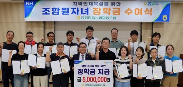 강진한들농협(조합장 조명언)은 지난 15일 본점 2층에서 지역인재육성을 위한 “조합원 자녀 장학금 수여식”을 개최하고 초·중·고등학생 16명에게 총 500만 원의 장학금을 전달했다.이번 장학금 전달은 조합원 가정의 교육비 부담을 덜고 학생들이 학업에 전념할 수 있도록 돕기 위해 마련된 것으로, 강진한들농협은 매년 장학사업을 꾸준히 이어오며 지역사회에 실질적..