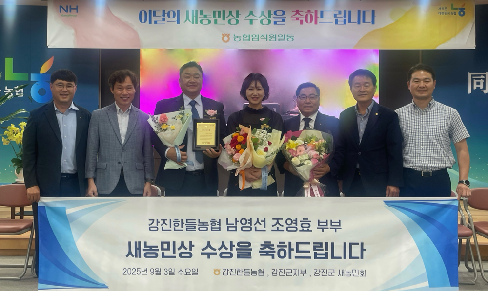 강진한들농협 조합원인 남영선·조영효 부부(육일농장)가 농협중앙회가 주관하는 ‘이달의 새농민상’ 수상자로 선정됐다.새농민상은 농협중앙회가 전국의 농민을 대상으로 심사해 시상하는 영예로운 상이다. 특히 농업에 대한 헌신적인 노력과 지역 농업 발전에 기여한 공로 등이 심사기준이다.남영선·조영효 부부는 3대째 수도작을 중심으로 영농기반을 확고히 다졌다. 아버지에 ..