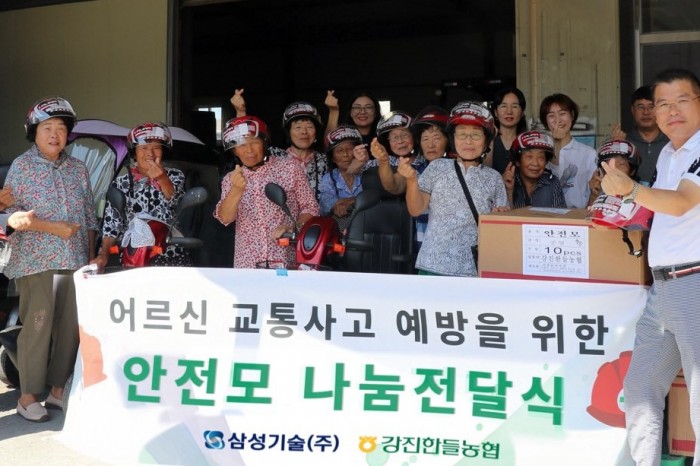 강진한들농협 (조합장 조명언)과 삼성기술(주)(대표 김길남)은 지난 22일 강진한들농협 영농자재센터에서 ‘어르신 교통사고 예방을 위한 안전모나눔전달식’을 개최하고 지역 어르신 백여명에게 안전모를 전달했다.이번 행사는 교통사고에 취약한 고령 운전자와 보행자의 안전을 지키고 교통안전에 대한 인식을 높이고자 마련됐다. 전달식에는 강진한들농협 임직원과 삼성기술 관..