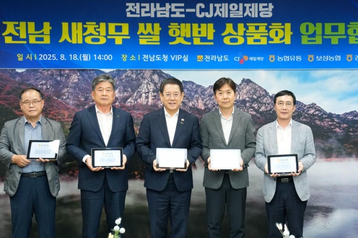 지난 18일 전남도와 CJ, 농협유통, 보성·강진통합RPC는 전남도청에서 새청무 쌀 활용 햇반 출시를 통해 안정적 원료곡 공급부터 소비 활성화까지 협력하는 업무협약을 했다.협약식엔 김영록 도지사, 박린 CJ제일제당 식품한국대표, 이찬호 농협유통 전무이사, 문병완 보성통합RPC 조합장과 진성국 강진통합RPC 조합장이 참석했다.협약은 전남에서 육성해 찰기와 윤..