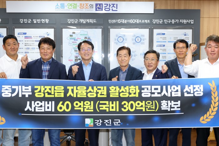 강진읍 오감통시장 일원을 사업 대상지로 한 ‘2025년 자율상권 상권활성화 공모사업’에 최종 선정되어 2025년부터 2029년까지 5년간 총 60억 원을 투입하여 지역 상권 활성화에 나선다.중소벤처기업부 주관에서 국가지역균형발전 특별회계사업으로 전환되어 전라남도 공모 절차를 거쳐 중소벤처기업부와 협의를 통해 선정됐다.강진읍 자율상권활성화 사업은 상인·임대인..