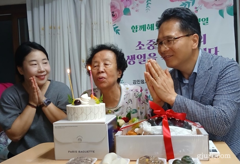 • 강진읍사무소가 최근 홀로 생일을 맞이한 어르신 4명을 직접 찾아가 생신을 축하하고 따뜻한 마음을 전했다.