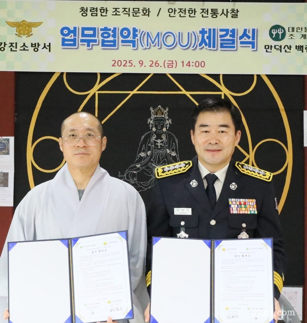 백련사 주지 설도스님은 “천년의 역사와 동백꽃 향기로 많은 이들을 품어온 백련사는 청정 수행과 안전을 함께 지켜야 할 소중한 도량”이라며 “강진소방서와 함께 소방공무원의 심신 안정 지원 및 청렴·안전 문화 정착에 적극 동참하겠다”고 말했다.