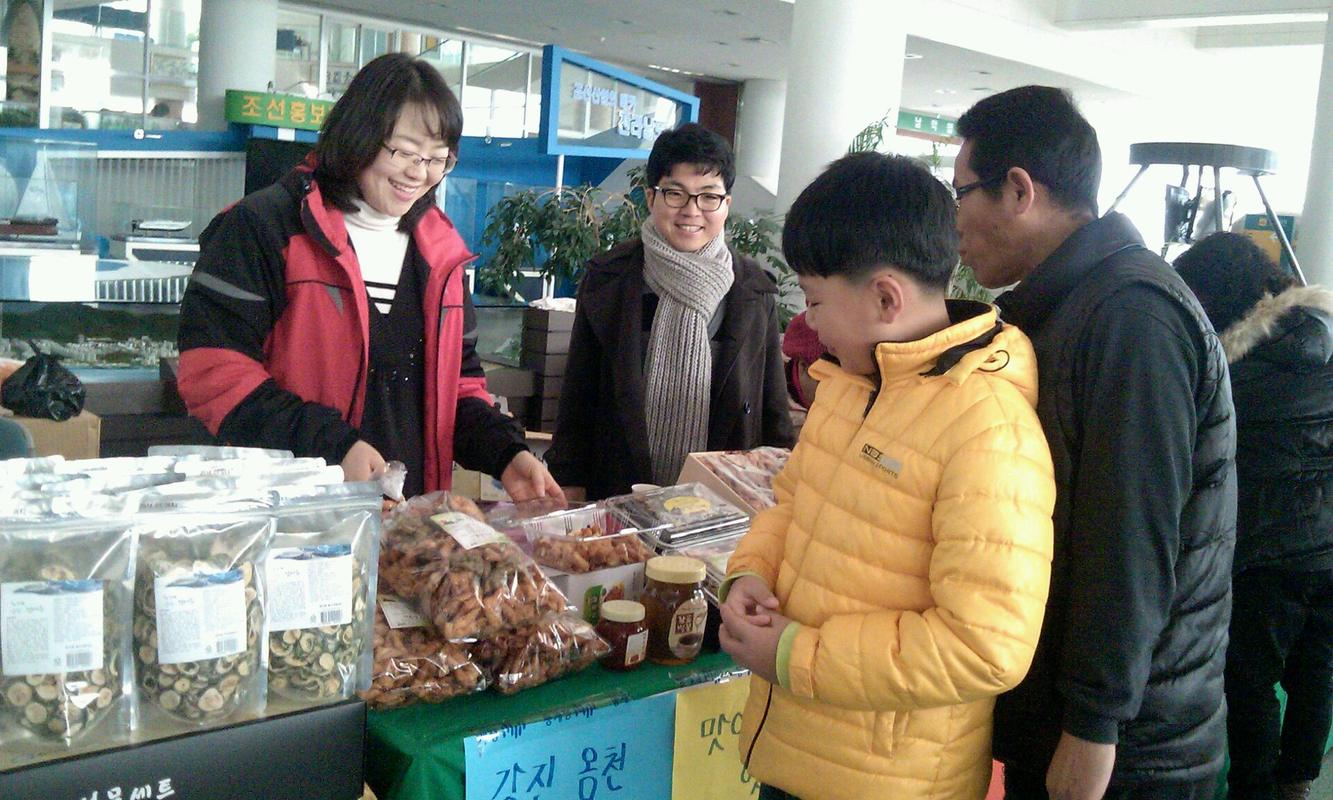 전라남도 주관으로 시군 정보화마을 설맞이 특판행사가 지난달 29일부터 31일까지 3일간 도청 윤선도홀에서 농어촌 특산품을 저렴한 가격에 판매하는 행사가 펼쳐져 사람이 몰리면서 성황을 이뤘다.   이번 행사에 참여한 작천황금닭 정보화마을과 옴천 정보화마을은 마을주민들이 직접 생산해 재배한 옴천 토하젓과 신선한 작천 황금계란, 여주차 등 산지에서 ..