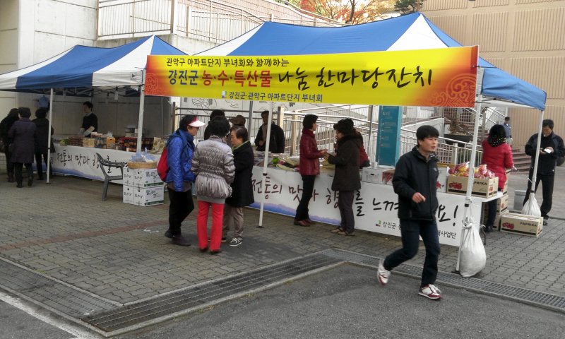강진군은 지난달 22일부터 23까지 2일간 서울 관악구에 있는 삼성산 아파트에서 주부들을 겨냥한 강진군 농수특산물 직거래장터를 열어 큰 호응을 얻었다. 이번 행사에 전시 판매된 상품은 강진군이 직접 우수농산물 생산업체를 엄선하여 농산물 분야, 가공식품분야, 수산물분야 등 3개 분야에 13개 업체, 68개 품목과 절임배추 등 사전 주문 3개 품목으로 강..