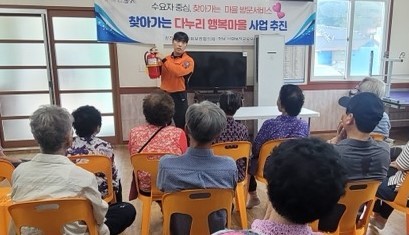 강진읍지역사회보장협의체가 지난 18일 강진읍 신풍마을과 점수마을을 대상으로 ‘찾아가는 다누리 행복마을’ 사업을 실행했다. 이번 사업은 주민들의 안전과 건강을 지키고 생활 속 불편을 해소하기 위한 맞춤형 복지 서비스로 마련됐다.이날 행사에서는 소화기 전달 및 소방안전교육, 화재경보기 점검·설치, 보건 교육, 혈당·혈압 측정, 노인레크레이션, 청자 도자기 만들..