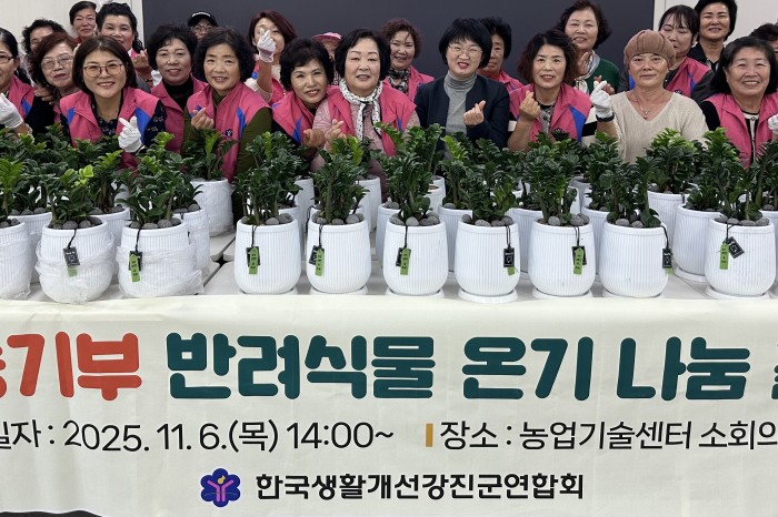 생활개선강진군연합회(회장 김혜경)와 꽃사랑연구회 회원 등 30여 명이 지난 6일, 농업기술센터 2층 소회의실에서 ‘재능기부 반려식물 온기 나눔 활동’을 실시했다.이번 행사는 지역의 독거노인들에게 직접 제작한 공기정화식물 화분을 전달해 정서적 안정과 심리적 위안을 제공하고, 더불어 실내 환경을 개선하는 데 목적을 두고 진행됐다. 회원들은 각자 정성껏..