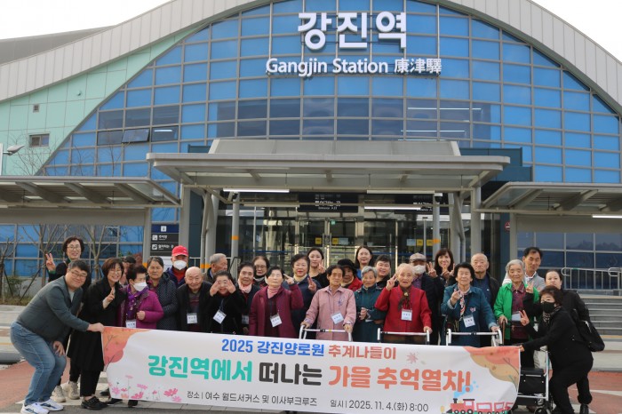 강진양로원이 지난 4일, 철도관광 경험이 없는 입소 어르신 20명을 모시고 추계 나들이 ‘내 생애, 내 고향 강진에서의 첫 기차여행’을 다녀왔다. 이번 행사는 철도 접근성이 열악했던 강진에 최근 철도가 개통된 이후, 지역 어르신들에게 첫 기차여행의 기회를 제공하고자 마련된 특별히 마련됐다.거동이 가능한 20명의 어르신과 9명의 인솔자가 함께한 이번..