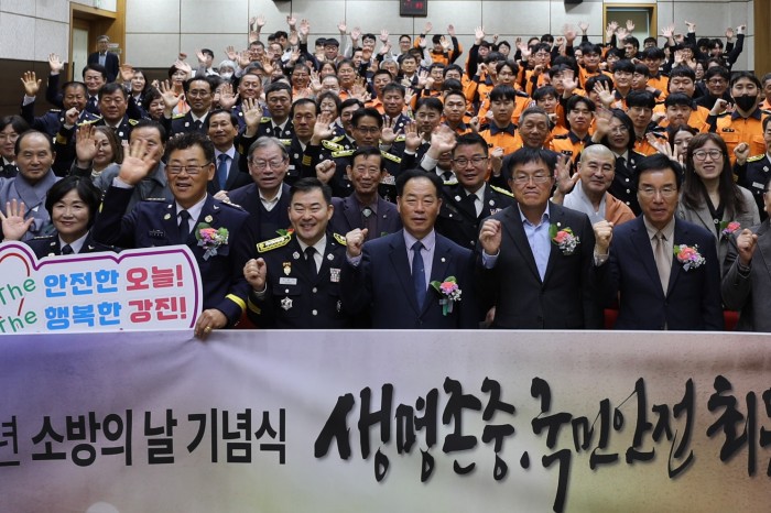 강진소방서(서장 정용인)는 지난 10일 오전 10시, 강진군 농업기술센터 대강당에서 제63주년 소방의 날 기념행사를 열고, 군민의 생명과 재산을 지키기 위해 헌신해온 소방공무원과 의용소방대원의 노고를 기렸다.이날 행사에는 강진원 군수를 비롯해 소방공무원, 의용소방대원, 유관기관 관계자, 민간 유공자 등 170여 명이 참석해 지역 안전에 헌신한 이들을 축하하..