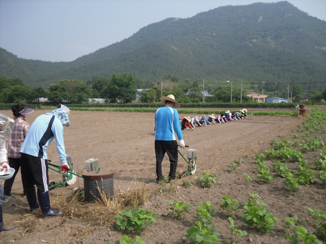 - 강진군청 공무원들 검정콩 특화마을 서리태 일제파종에 참여 -   전남 강진군이 웰빙 콩 특화단지 조성에 나섰다. 강진군은 콩 원료곡 판매위주의 단순소득 창출방식에서 과감히 탈피하여 메주, 된장 등 가공식품화로 고부가가치를 창출하기로 했다.   강진군은 사업비 9천만 원을 투입해 강진전통된장마을을 중심으로 논10ha, 밭25ha,..