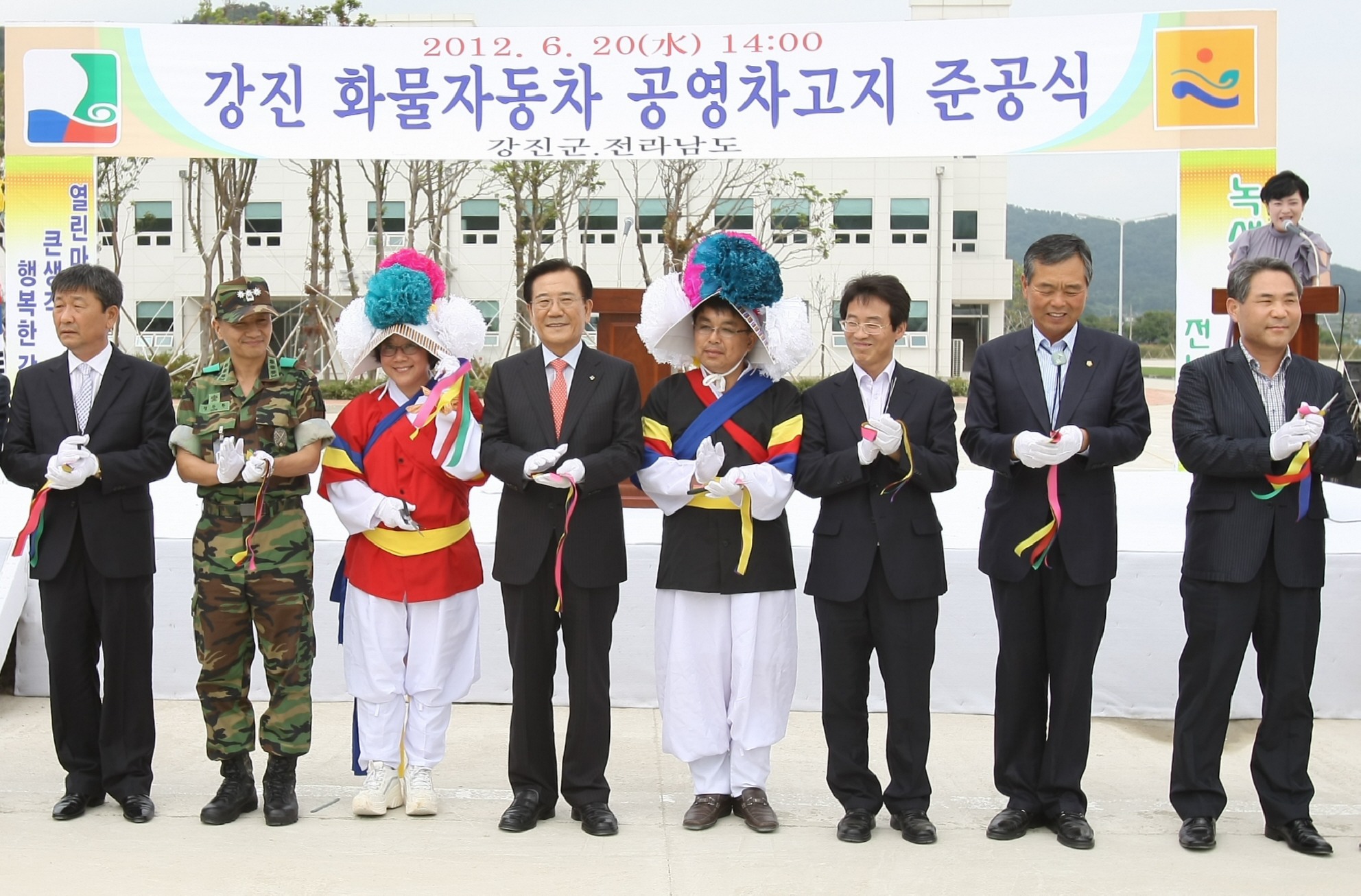 - 광양 컨부두, 목포 완도항(港) 잇는 요충지에 -   국내 최대 강진 화물공영차고지가 준공돼 본격 가동에 들어갔다.   지난 20일 강진군 성전면에 위치한 강진 화물자동차 공영차고지 현지에서 박준영 전라남도지사, 강진원 강진군수, 김은식 강진군의회 의장, 기관단체장, 주민 등 300여명이 참석한 가운데 ‘강진 화물공영..