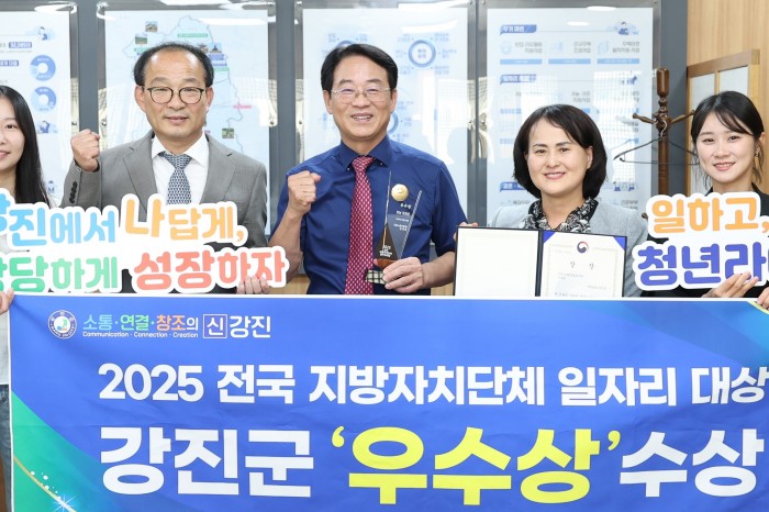 강진군이 지난달 30일 청주오스코에서 열린 고용노동부 주관 ‘2025 전국 지방자치단체 일자리대상’에서 지역일자리 공시제 부문 우수상을 수상했다.‘전국 지방자치단체 일자리대상’은 고용노동부가 2012년부터 매년 전국 광역·기초 자치단체를 대상으로 일자리 사업을 평가해 우수 자치단체를 선정·시상하고 우수사례를 공유하는 우리나라 대표 지역일자리 시상식이다.이번..