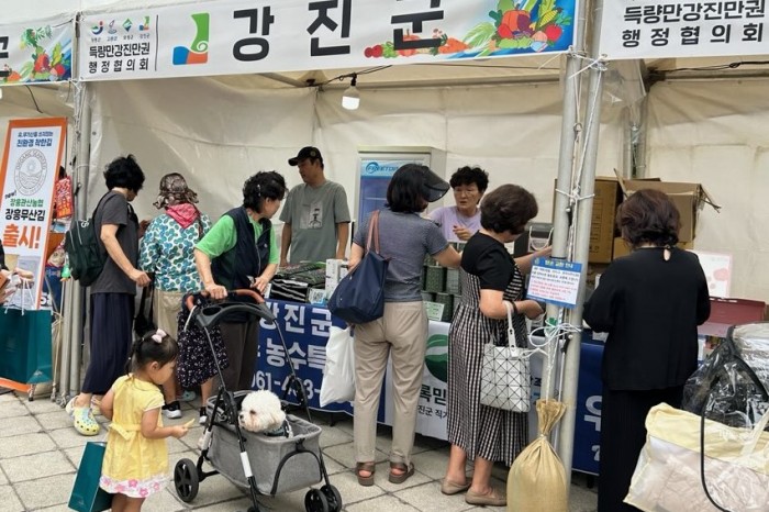 서울 강남구 도곡렉슬아파트에서 지난 12일과 13일 이틀간 개최된 득량만강진만권 행정협의회 4개군(강진·장흥·보성·고흥) 합동 직거래장터가 성황리에 마무리되며 도심 속에서 강진 농특산물의 우수성을 알리는 소중한 기회가 됐다. 코로나19 이후 몇 년간 중단됐던 아파트 단지 직거래 행사가 오랜만에 재개된 만큼 주민들의 뜨거운 관심 속에 활기를 띠었다.강진군은 ..