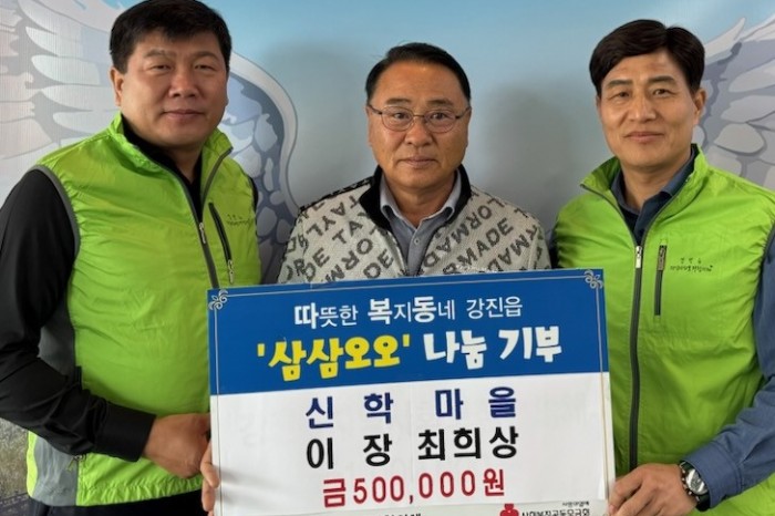 강진읍지역사회보장협의체(공동위원장 정명흥, 임창복)에서 주관하는 ‘삼삼오오 착한 기부 나눔 릴레이’에 최희상 신학마을 이장과 최영수 옥치마을 이장, 박성희 호산마을 이장, 천유석 학산마을 이장, 이범선 강진읍 이장단 단장, 박대현 강진농협 이사, 김종유 팔영마을 이장, 최광수 장동마을 이장이 각각 50만 원씩을 기탁하며 이웃사랑의 뜻을 전했다.