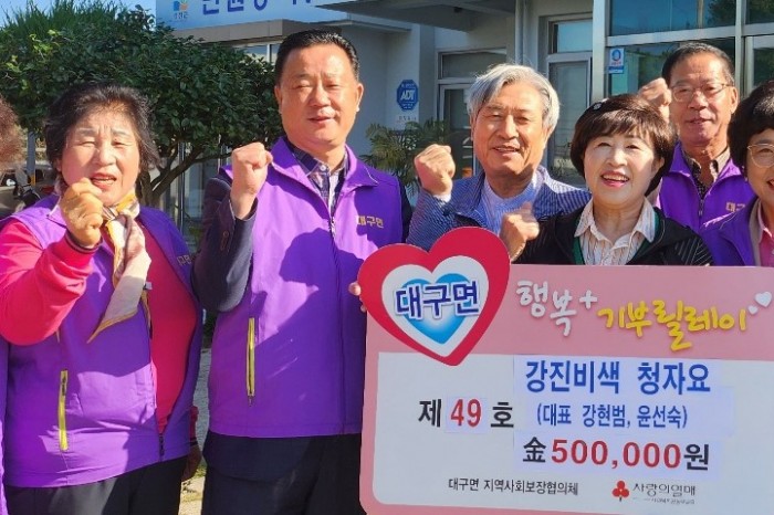 강진군 대구면 강진비색청자요 대표 강현범, 윤선숙 부부가 지난 20일 강진군 대구면 지역사회보장협의체에 현금 50만원을 기탁하며, ‘행복플러스 기부릴레이’ 캠페인에 동참했다.이날 기부금은 대구면 지사협 특화사업인 ‘행복플러스 우리동네 살피미 사업’을 통해 저소득 가구의 긴급 생계비, 의료비, 주거환경 개선 등 다양한 복지 서비스에 사용될 예정이다.