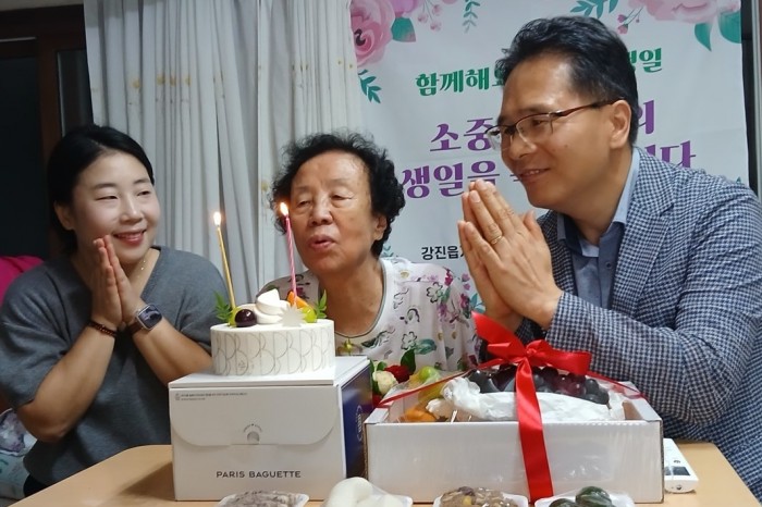 강진읍사무소가 최근 홀로 생일을 맞이한 어르신 4명을 직접 찾아가 생신을 축하하고 따뜻한 마음을 전했다.이번 생신축하 방문은 가족이나 이웃의 돌봄이 부족한 어르신들이 외로이 생일을 보내지 않도록하기 위해 마련된 행사로, 읍 직원들이 케이크와 선물을 준비해 각 가정을 방문해 축하 인사를 전하고 안부를 살폈다.