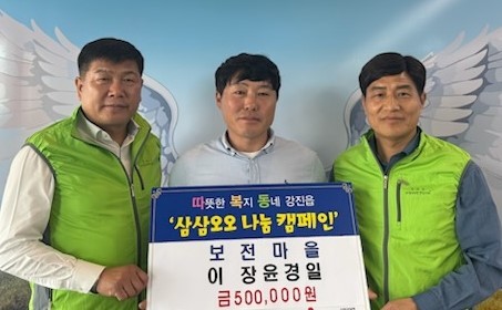 강진읍 지역사회보장협의체(공동위원장 정명흥, 임창복)가 주관하는 ‘삼삼오오 착한 기부 나눔 릴리에’의 37번째(25-37호) 주자로 윤경일 강진읍 보전마을 이장이 50만 원을 기탁했다. 삼삼오오 착한 기부 나눔 릴레이는 지역사회 내 기부 문화를 확산하고 복지 사각지대에 놓은 이웃을 돕기 위해 강진읍지역사회보장협의체에서 추진하는 사업이다.