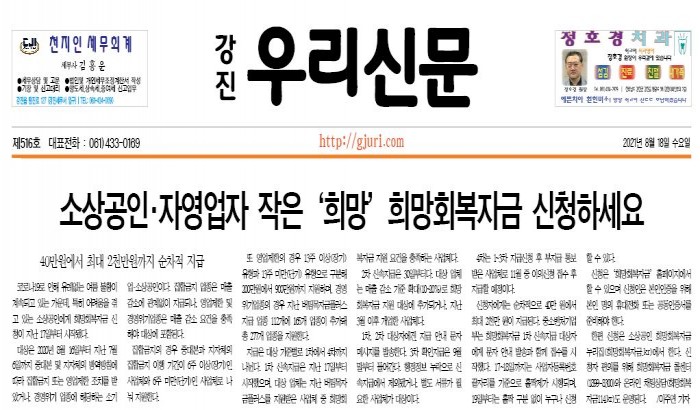 [전체] 강진군, 전 군민 대상 일상회복지원금 10만원 지급 2022.01.21 金 10:03